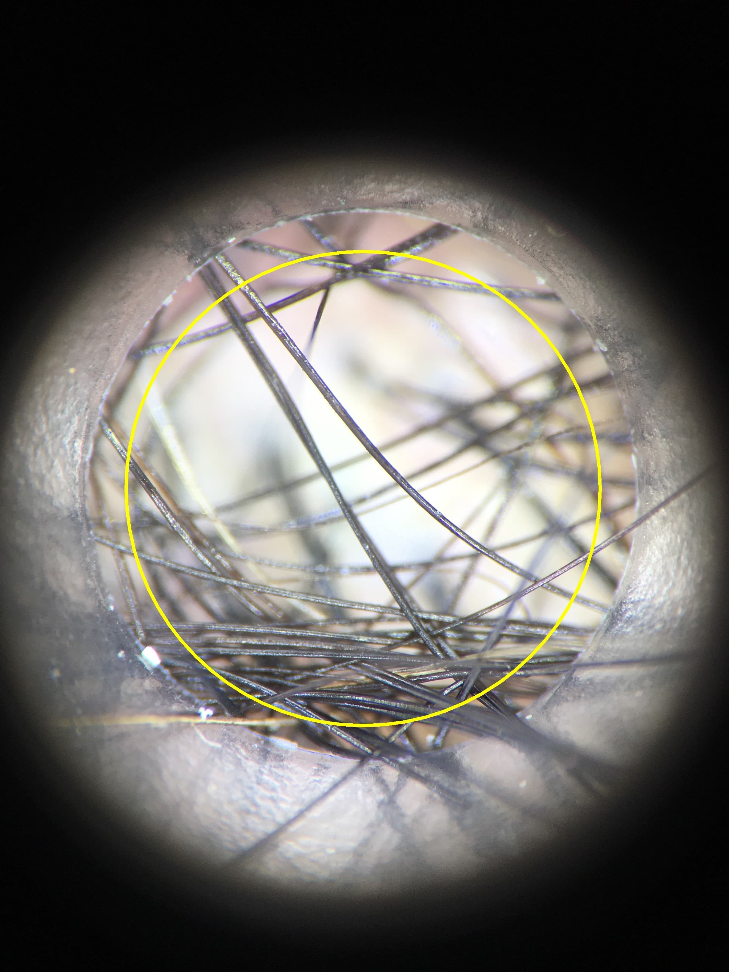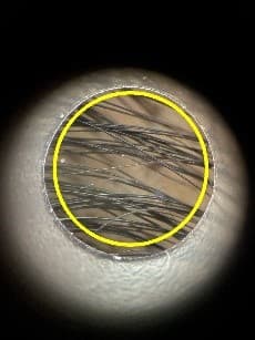 To ensure calibrations are done correctly, we can check the result images given by our calibration algorithm. The following images demonstrate examples of nicely done hair calibrations from which we can see a green circle well fits the peephole while staying reasonably away from the edge of the device.